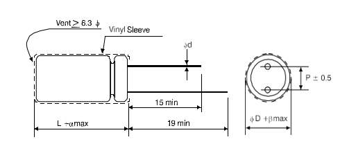 | * コンデンサが復元された場合、上記の仕様は満たされる必要があります。 20 暴露後 °C 1,000 で何時間か 105 ℃(電圧印加なし). 測定の前に、定格電圧をコンデンサに印加する必要があります。 160 ~450V (JIS C参照 5101 -44.1). | ||||||||||||||||||||