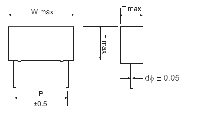 | リード線径 | d | 0.6 / 0.8 | ± 0.05 |