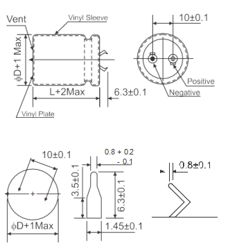 | تسرب الحالي (عند 20 درجة مئوية) | I=0.02CV أو 1.5mA أيهما أصغر (بعد 5 دقائق) أين, C = السعة المقدرة في F. V = تصنيف جهد العمل DC. | |||||||||||||||||||||||